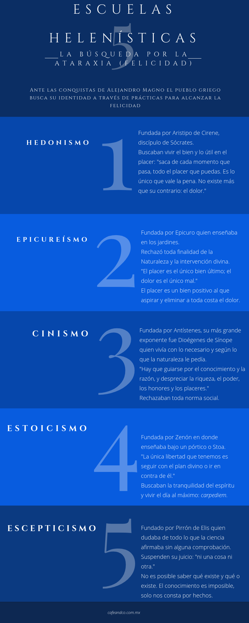 BlogCAFÉ&co.CoachingFilosofíaHistoriaPhilosophy hacks mayo 4, 2020 5 cosas que debes saber sobre las Escuelas Helenísticas Compartir cínicosepicúreosescépticosEscuelas HelenísticasestóicosfelicidadGreece facebook twitter pinterest